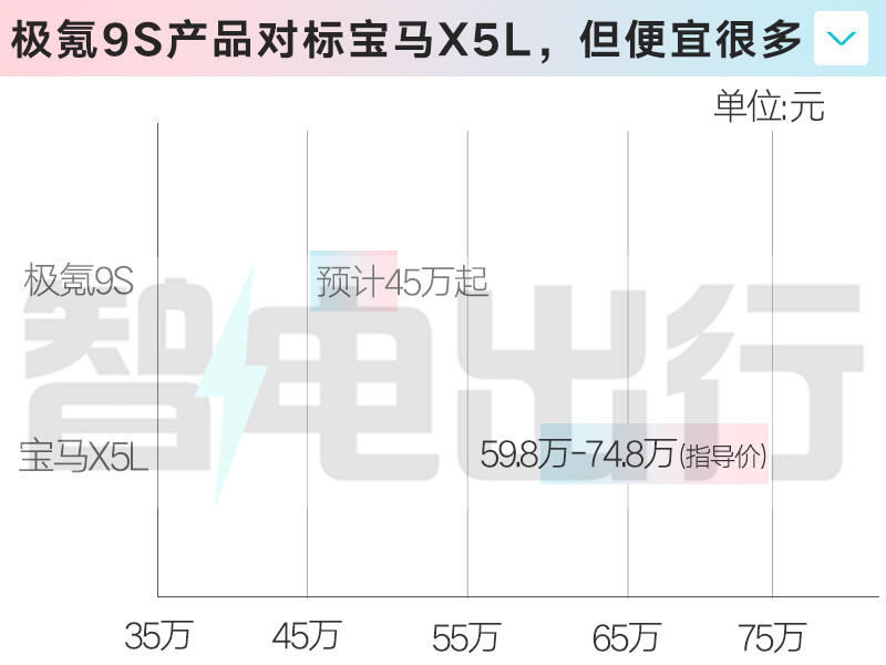 新車有望于下月亮相,預(yù)計(jì)在一季度末正式上市。參考極氪9X目前53.8萬元的成交均價(jià),市場(chǎng)普遍預(yù)測(cè)極氪9S的起售價(jià)會(huì)在45萬元左右,比寶馬X5L便宜15萬。